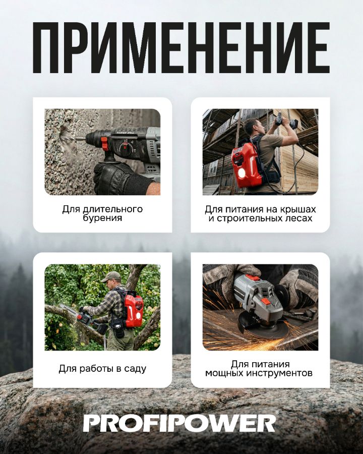 Ранцевый аккумулятор T7-01 - это решение для длительной работы без розетки. Совместимость со всеми аккумуляторными инструментамии PROFIPOWER 18/20B.