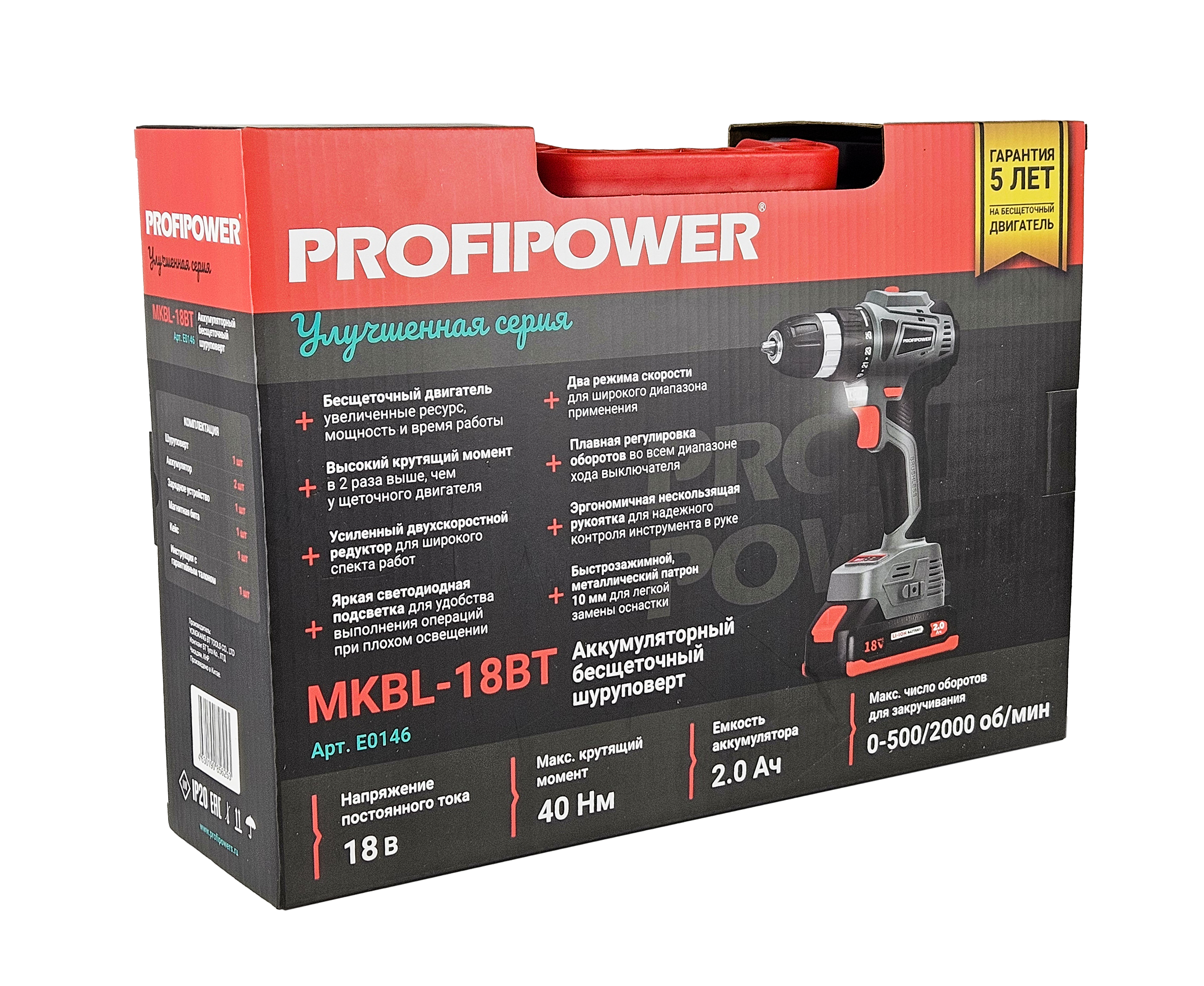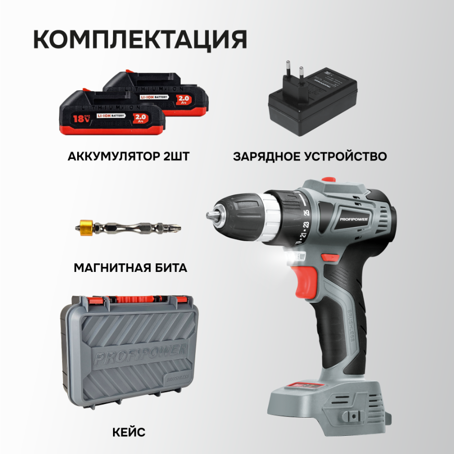 Аккумуляторный бесщеточный шуруповерт PROFIPOWER MKBL-18BT